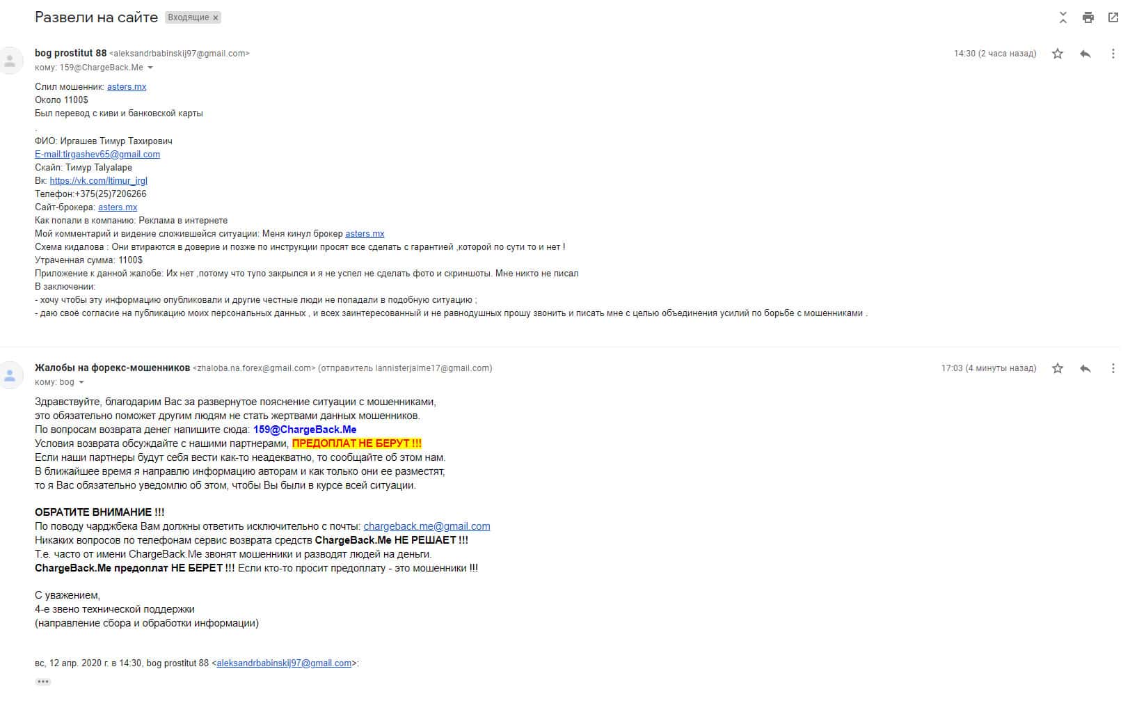 - Подробная жалоба на аферистов Астерс Мх - клиент потерял 1100 долларов США