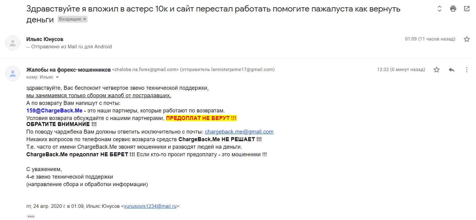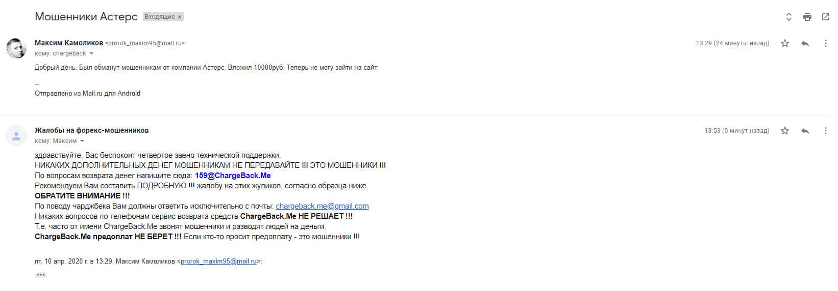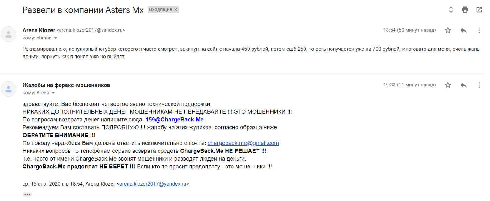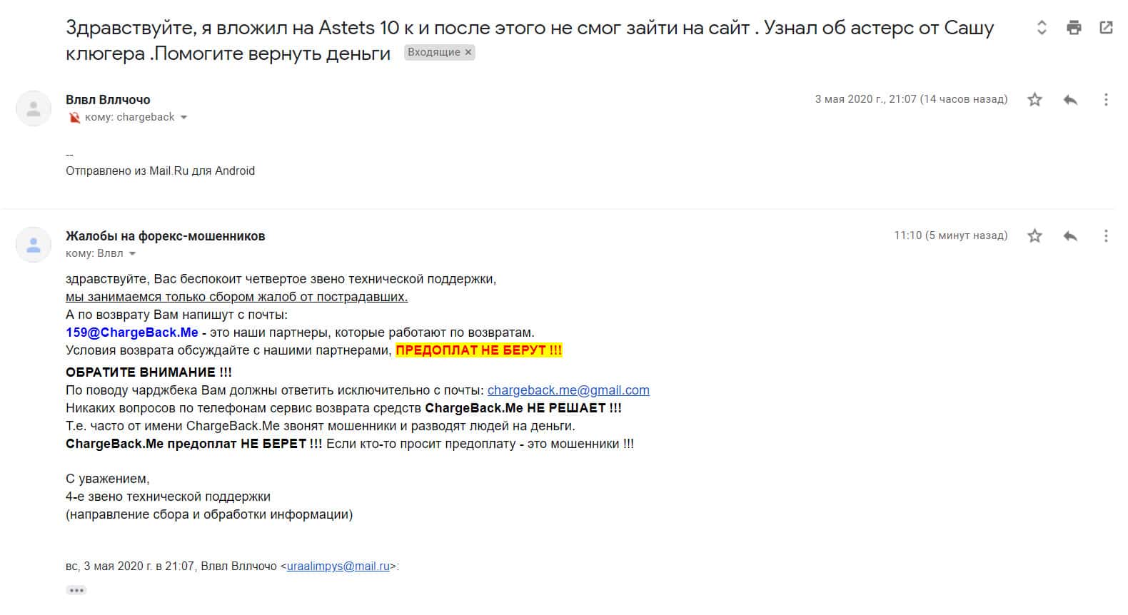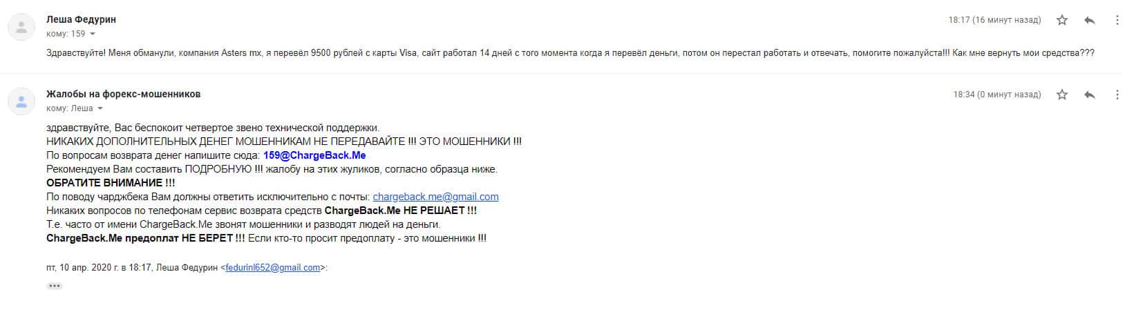 - Жалоба на аферистов Asters от очередного пострадавшего клиента