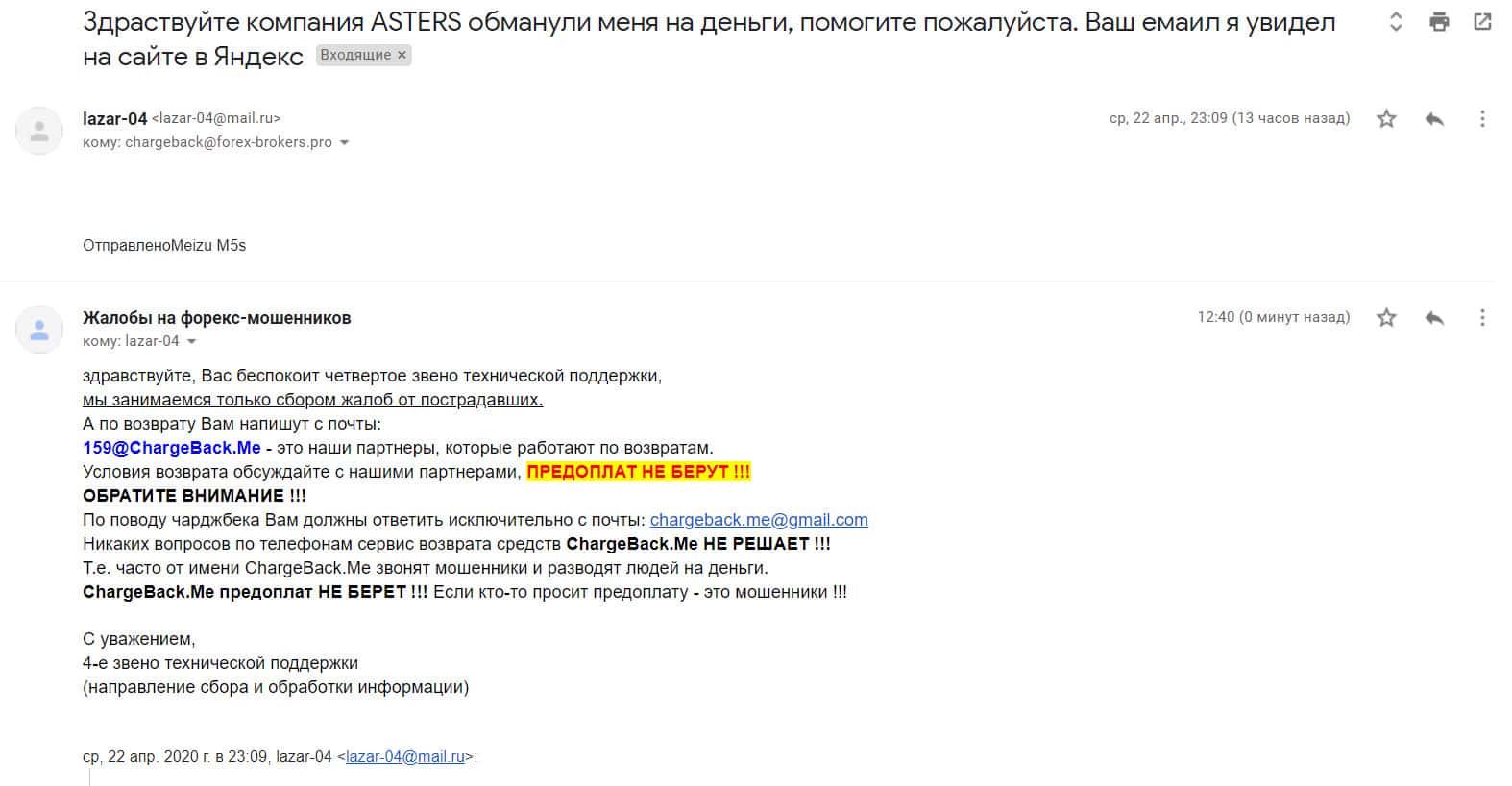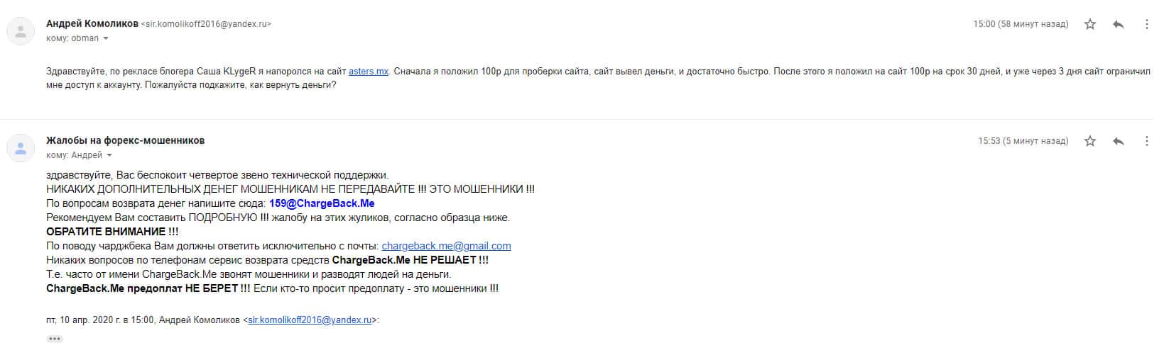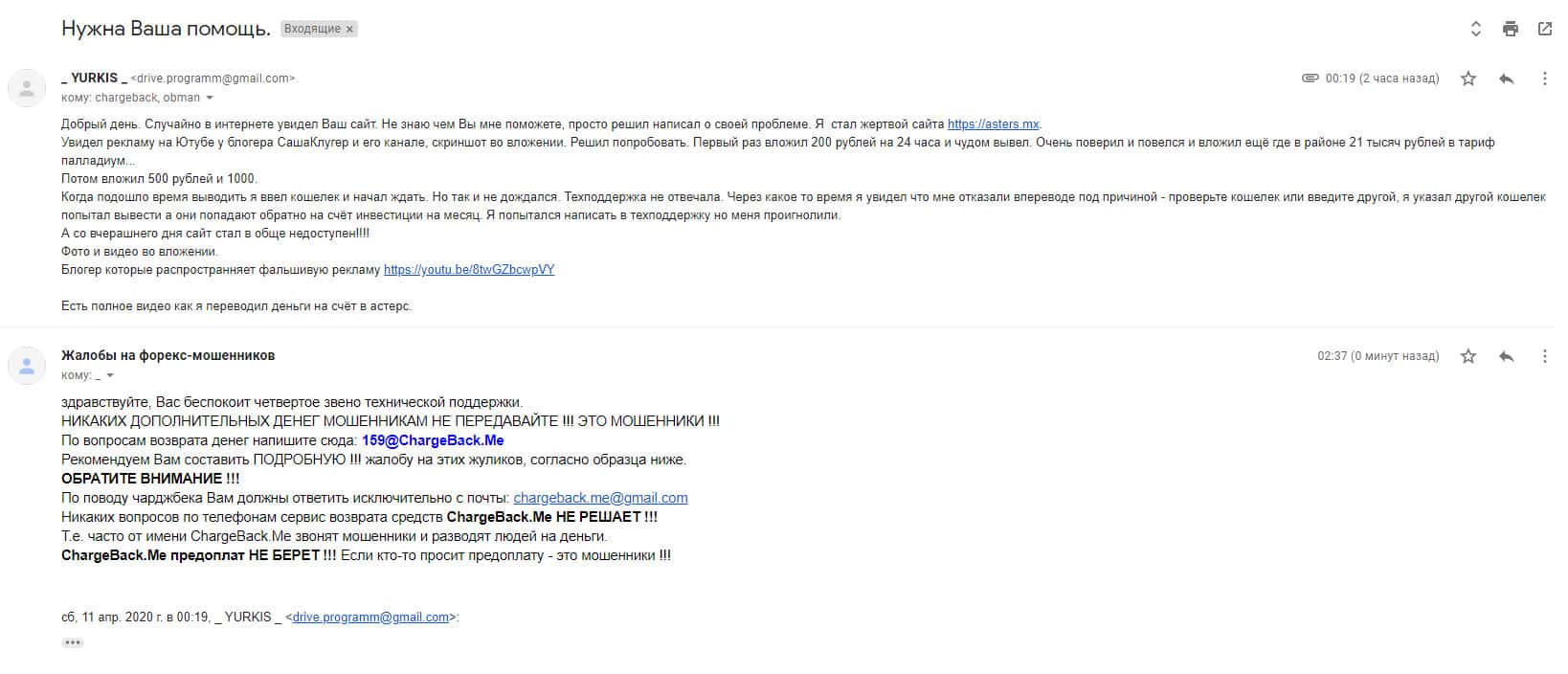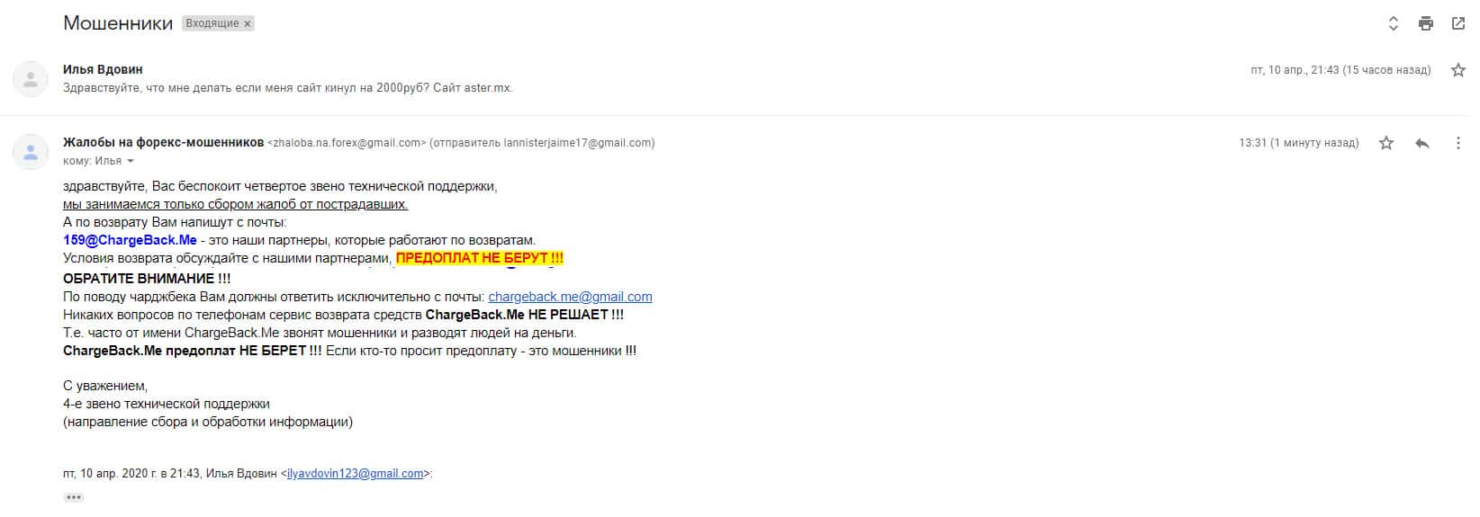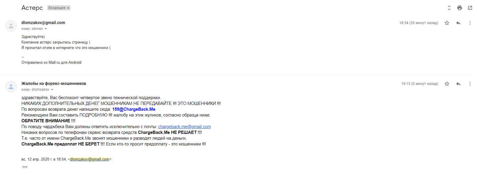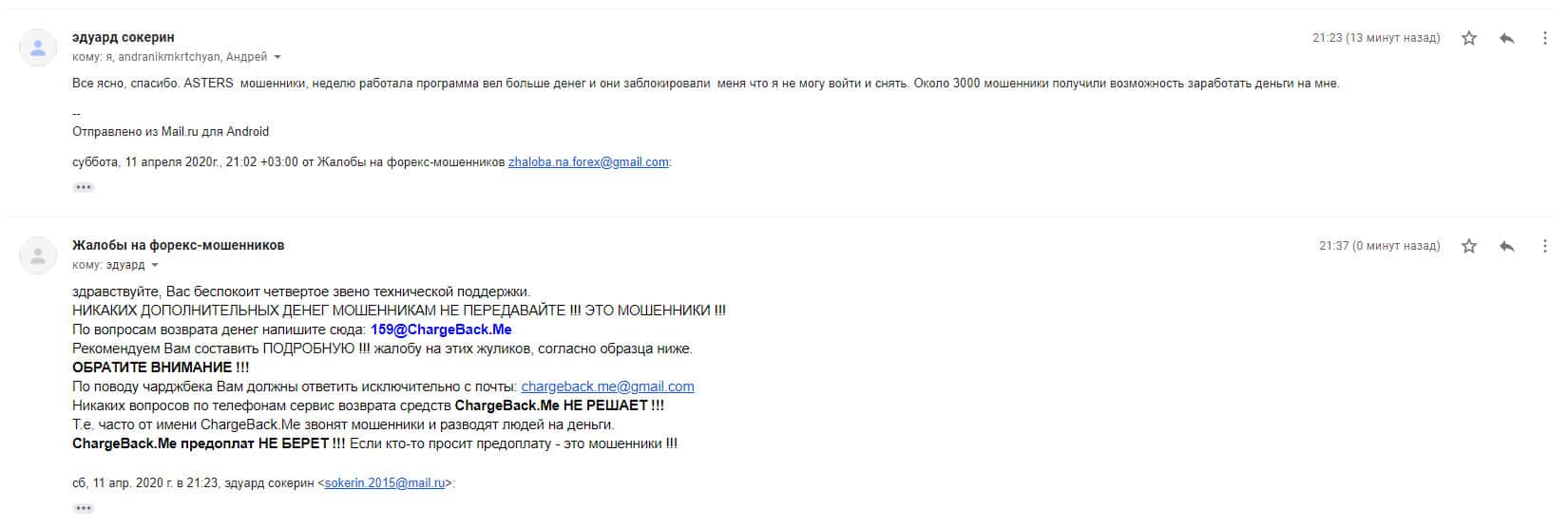 - Жалоба на аферистов Asters от очередного пострадавшего клиента
