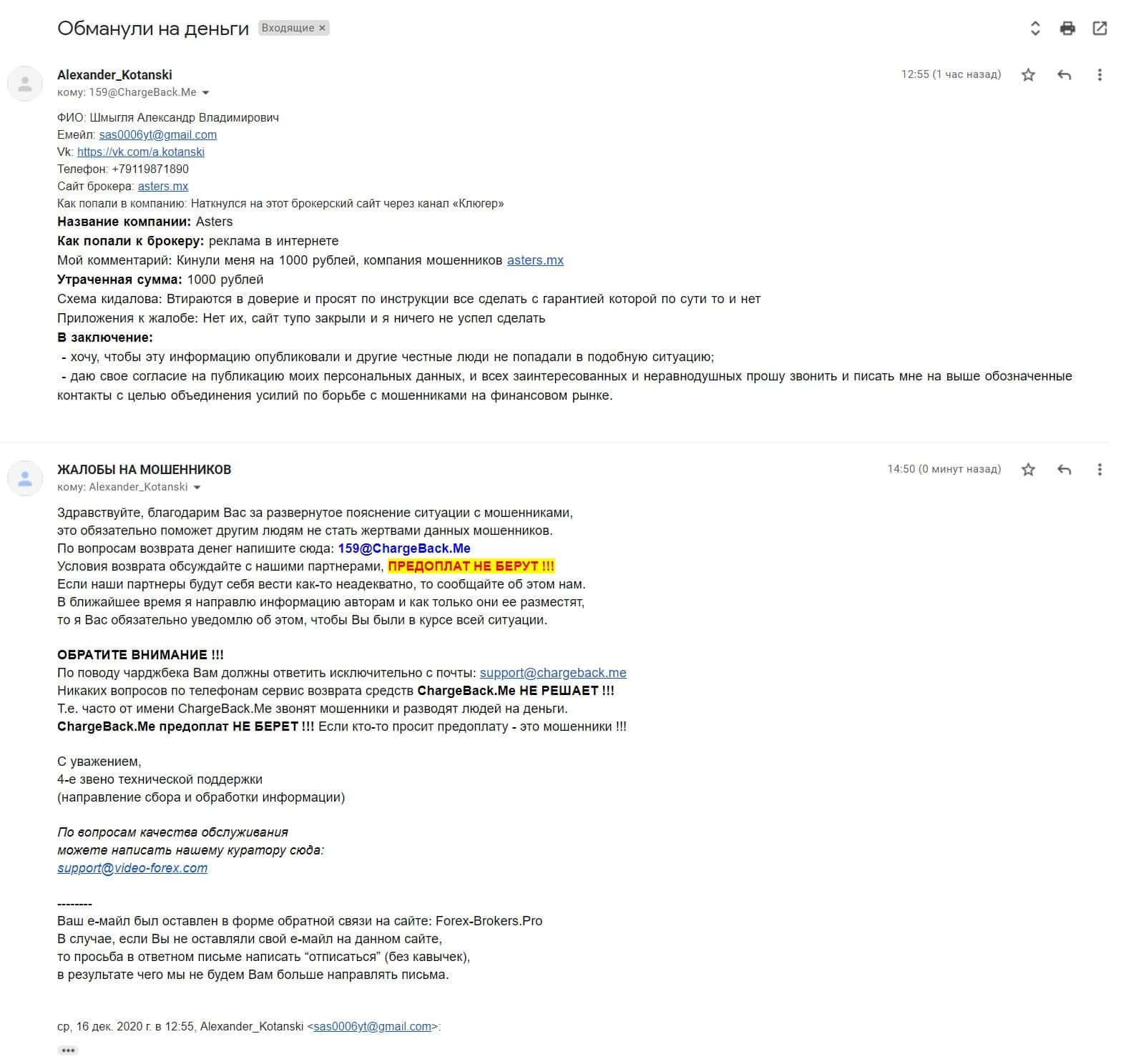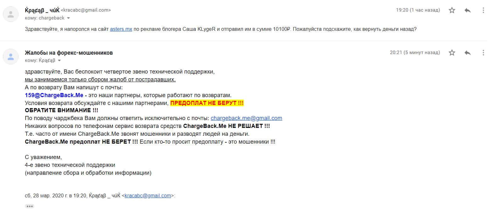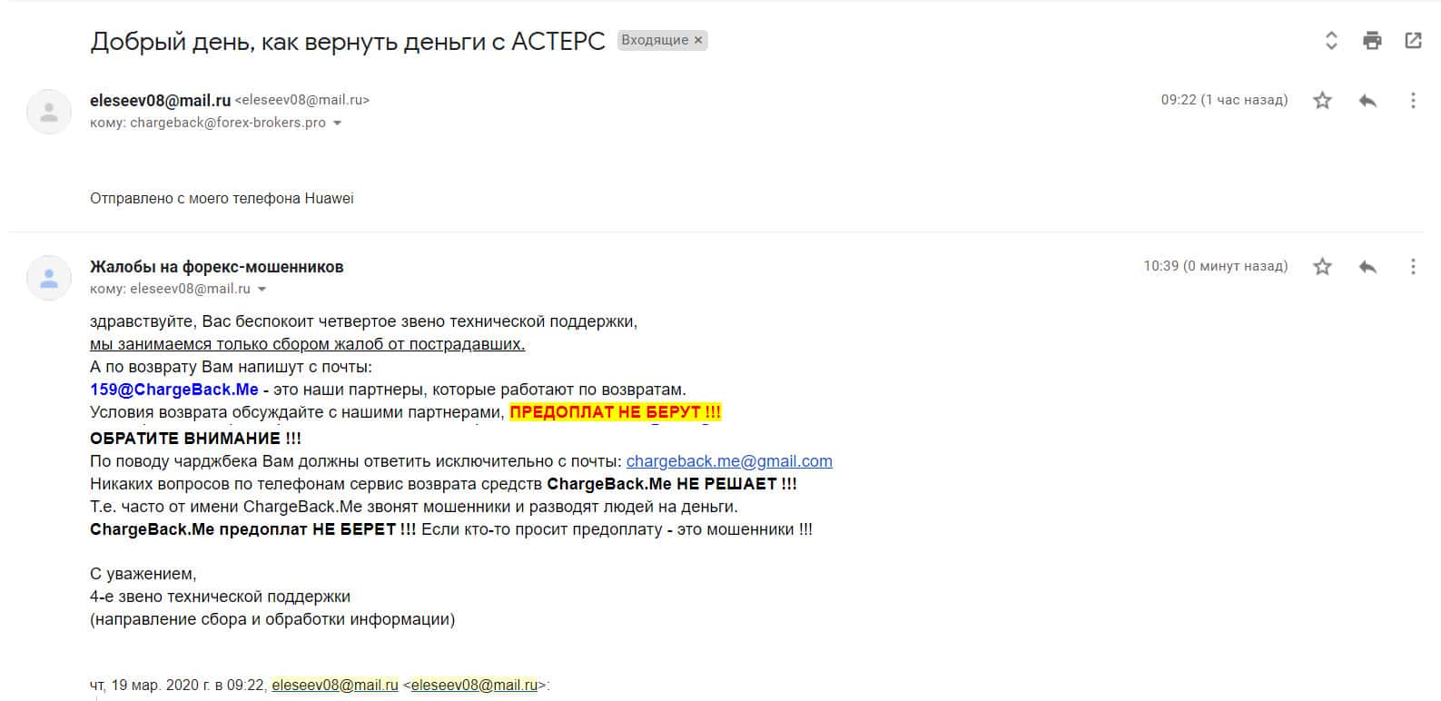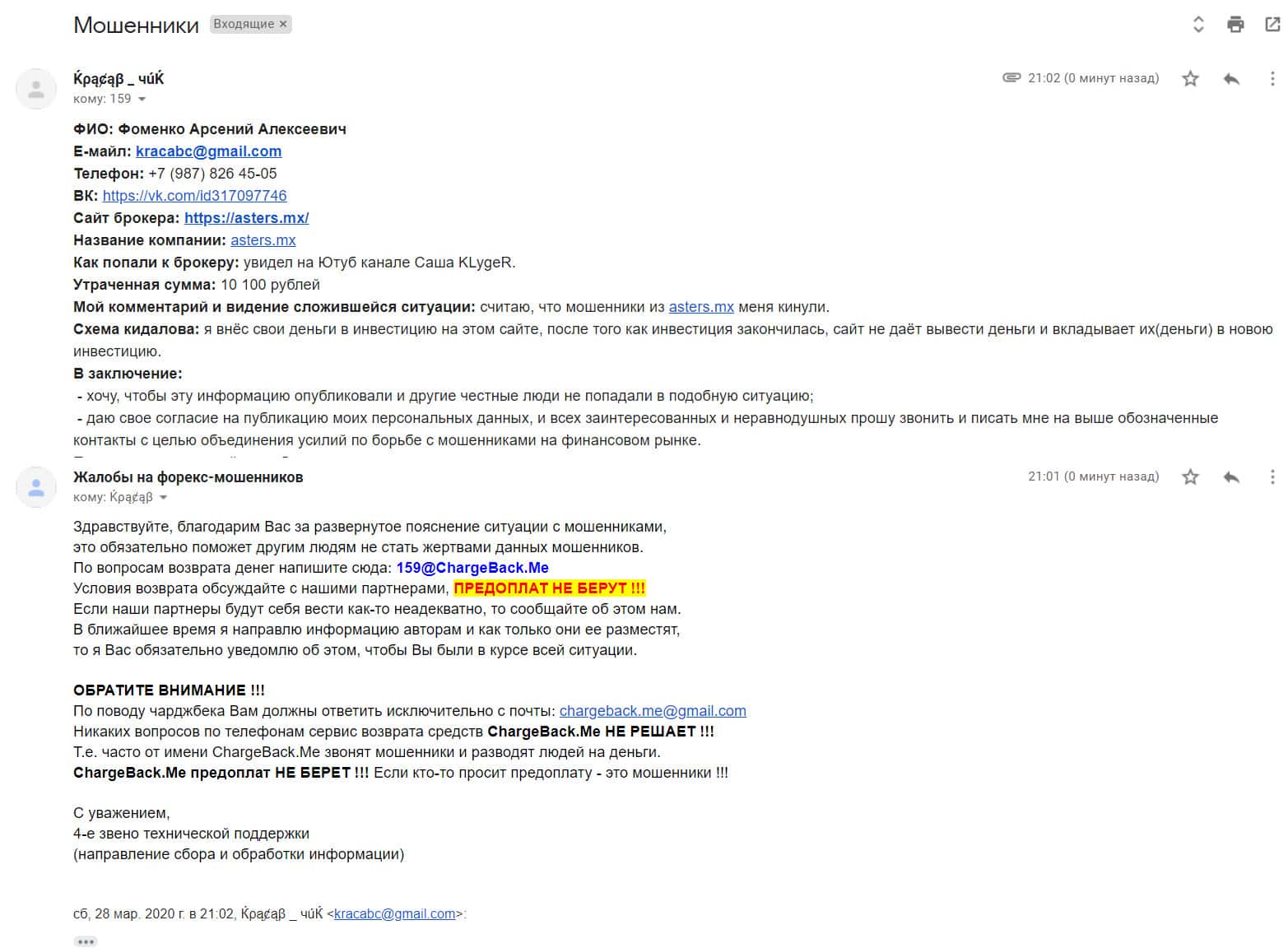 - Жалоба на аферистов Asters от очередного пострадавшего клиента