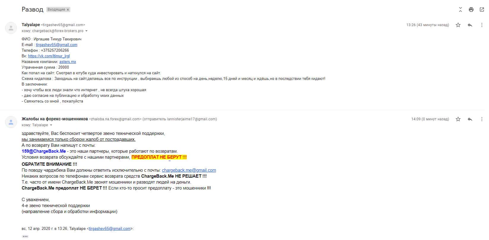 - Еще один облапошенный клиент Asters Mx написал жалобу на данных откровенных аферистов