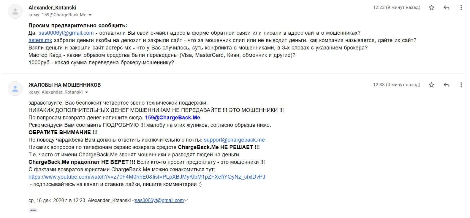 - адрес электронной почты инвестиционного лохотрона Asters Mx: support@asters mx