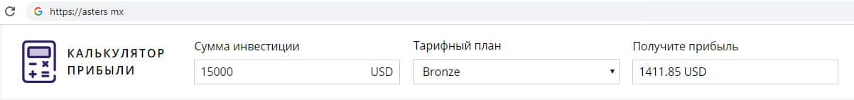 Калькулятор для подсчета прибыли на сайте аферистов Asters Mx