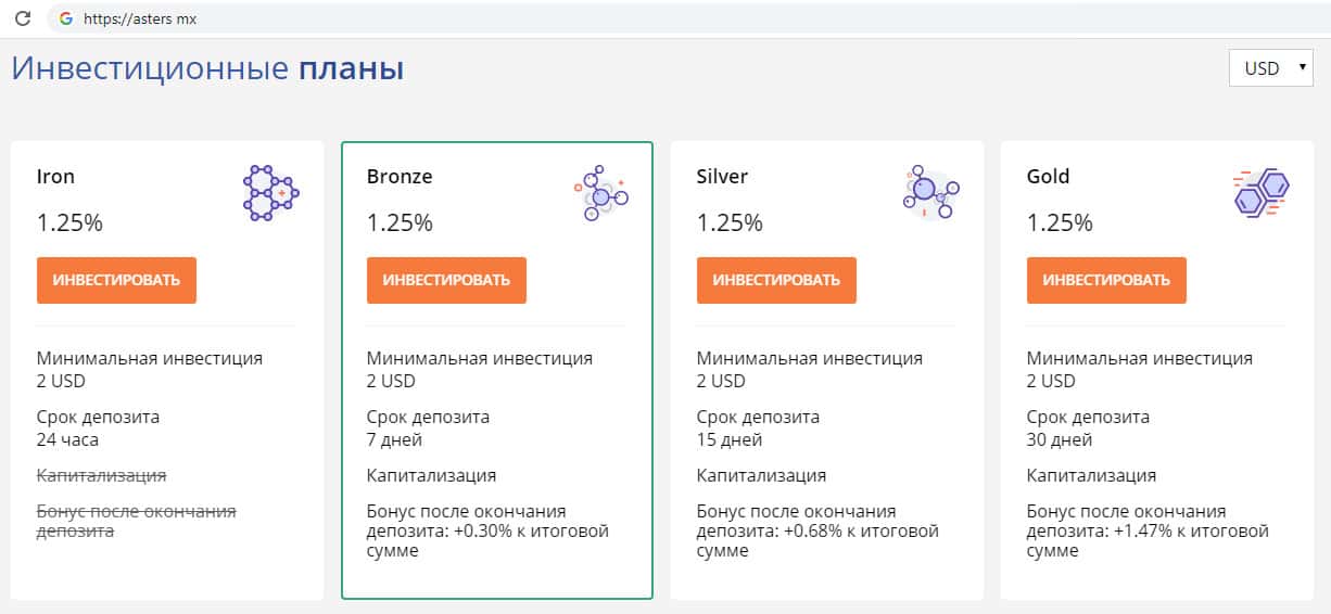 - Прибыль на сайте жуликов Астерс никак не зависит от выбранного Вами инвестиционного плана