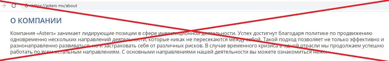 - Инвестиционная контора Asters Mx сотрудничает с брокерскими скам-организациями