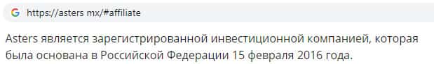 - На сайте шуллеров Asters Mx не указанно кто руководит компанией