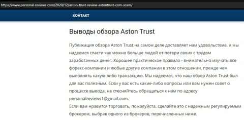 - Статьи и обзоры о лохотронском брокере Астон Траст