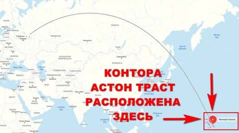 Исходя из официальных данных, мошенническая организация Астон Траст расположена на Маршалловых островах, что является оффшорной зоной и находится очень далеко от Москвы.