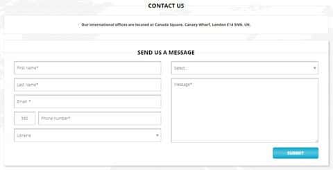 Также мошенническая контора Астон Траст предлагает своим клиентам воспользоваться формой для обратной связи, а также указывает адрес главного офиса в Лондоне: