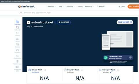 Что касается интернет-трафика портала мошенников Астон Траст, то здесь сервис симиларвеб ком не смог определить никакой информации из-за отсутствия популярности.