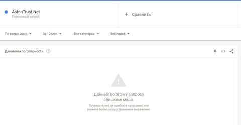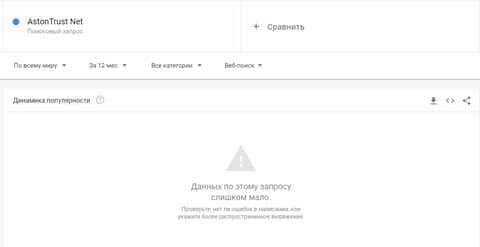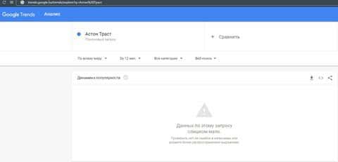 По поводу русскоязычного запроса конторы "АстонТраст" мошенники в Гугл выставили 0 показов в месяц, что является ничтожным показателем.