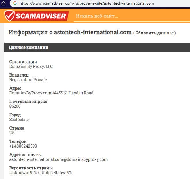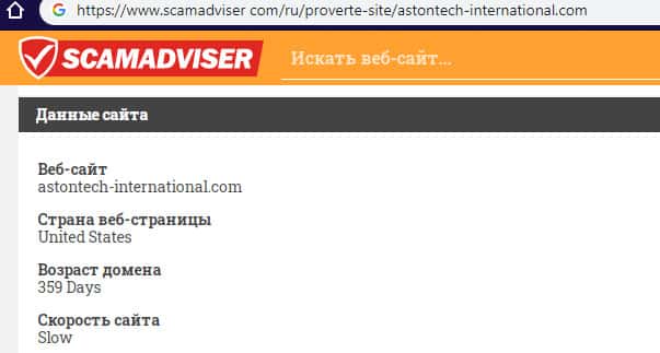 scamadviser com - сайт с технической информацией о жуликах Астонтеч Интернэшинал