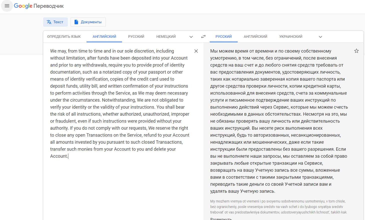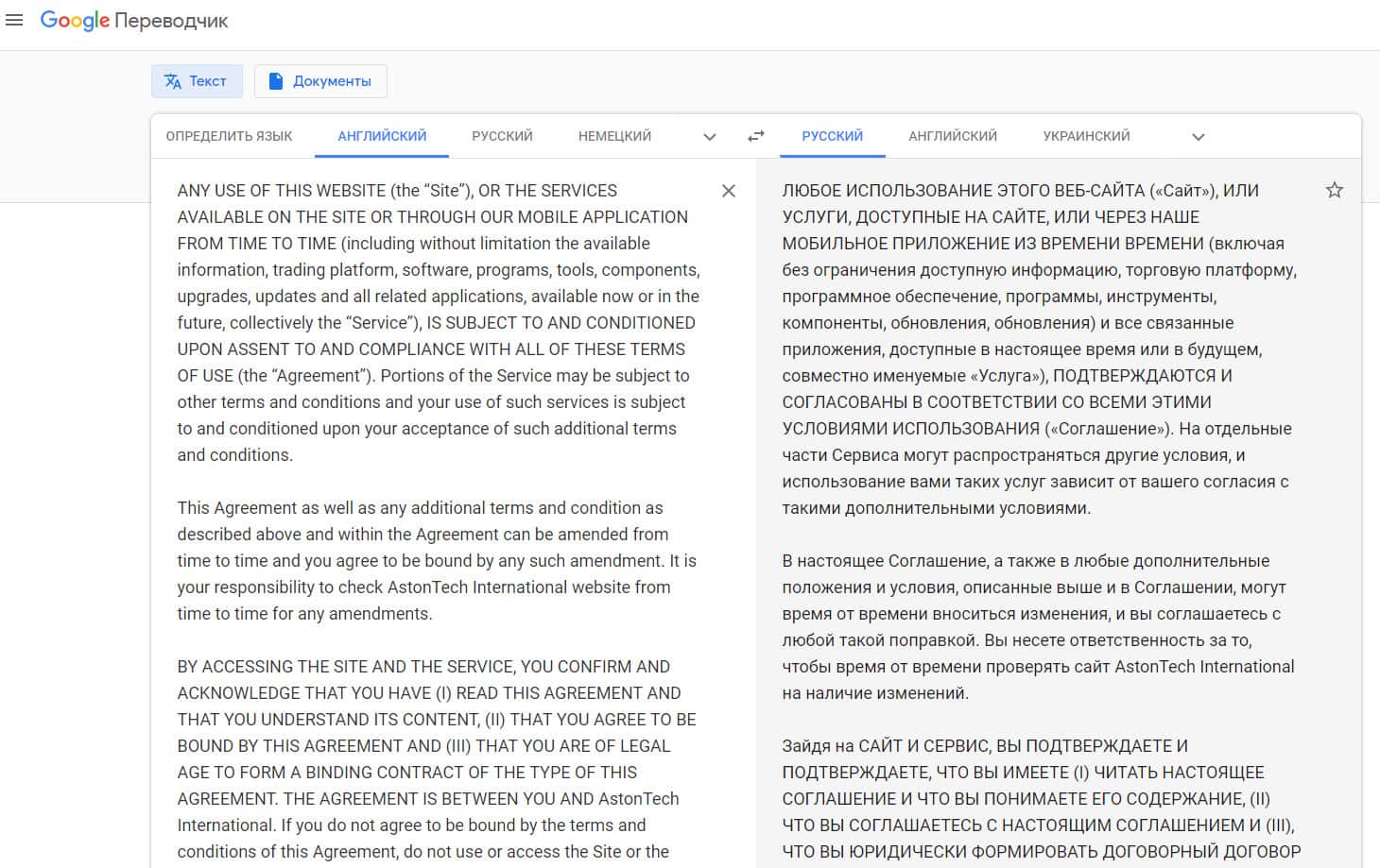 Перечень условий клиентского соглашения проходимцев Astontech-International