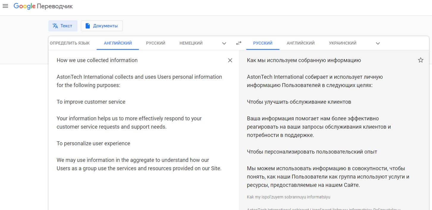 Далее в политике конфиденциальности аферистов Астонтеч Интернэшинал следует довольно сомнительная информация о том, зачем проходимцы Astontech-International собирают личную и персональную информацию наивных пользователей, которая не несет никакой смысловой нагрузки и расположена мошенниками исключительно для виду.