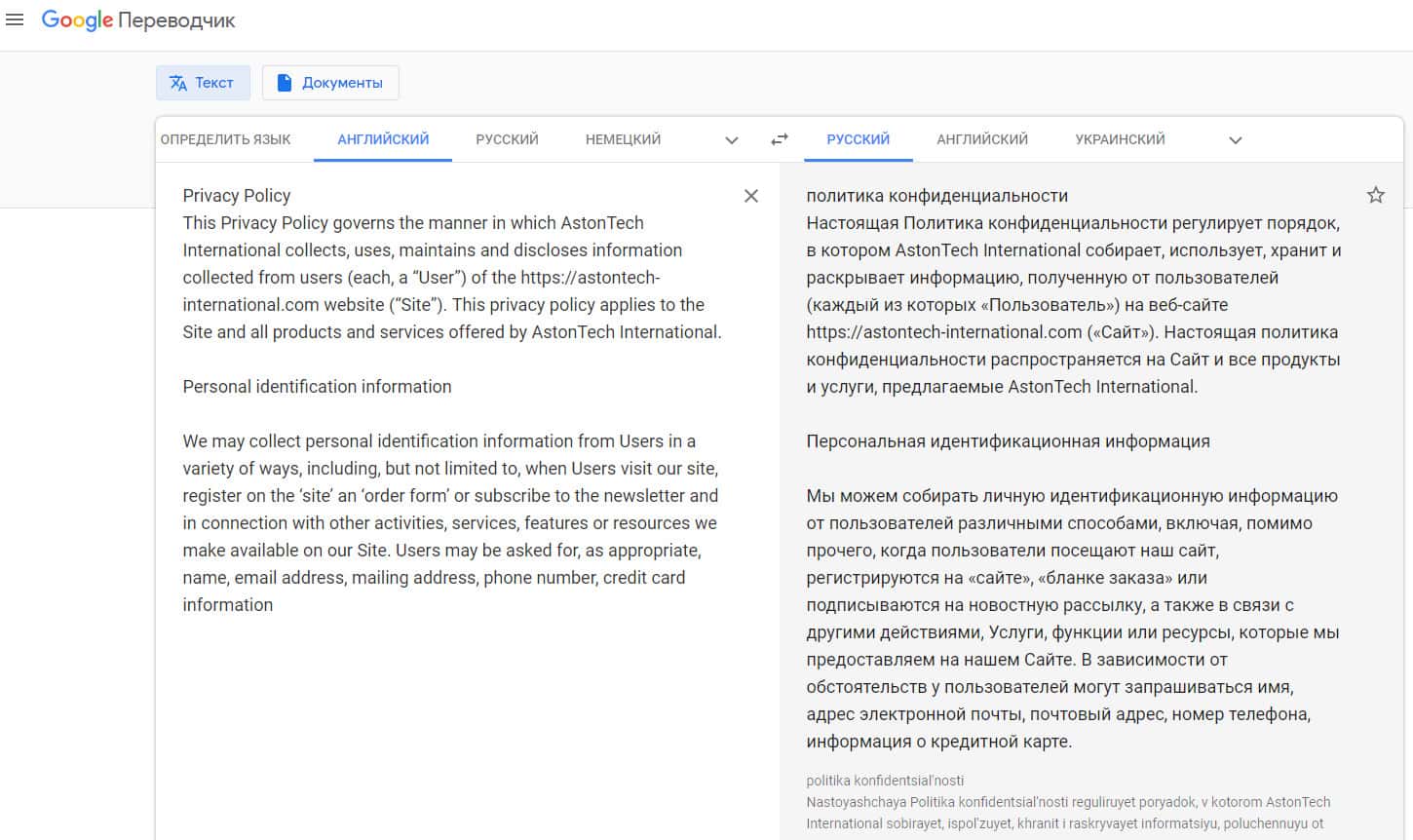 Политика конфиденциальности у мошенников Астонтеч Интернэшинал начинается с довольно стандартной информации о том, что это за документ и зачем он нужен, которая толком не несет в себе никакой информационной нагрузки и добавлена только для виду. На изображении, расположенном ниже, вы можете увидеть начало политики жулья.