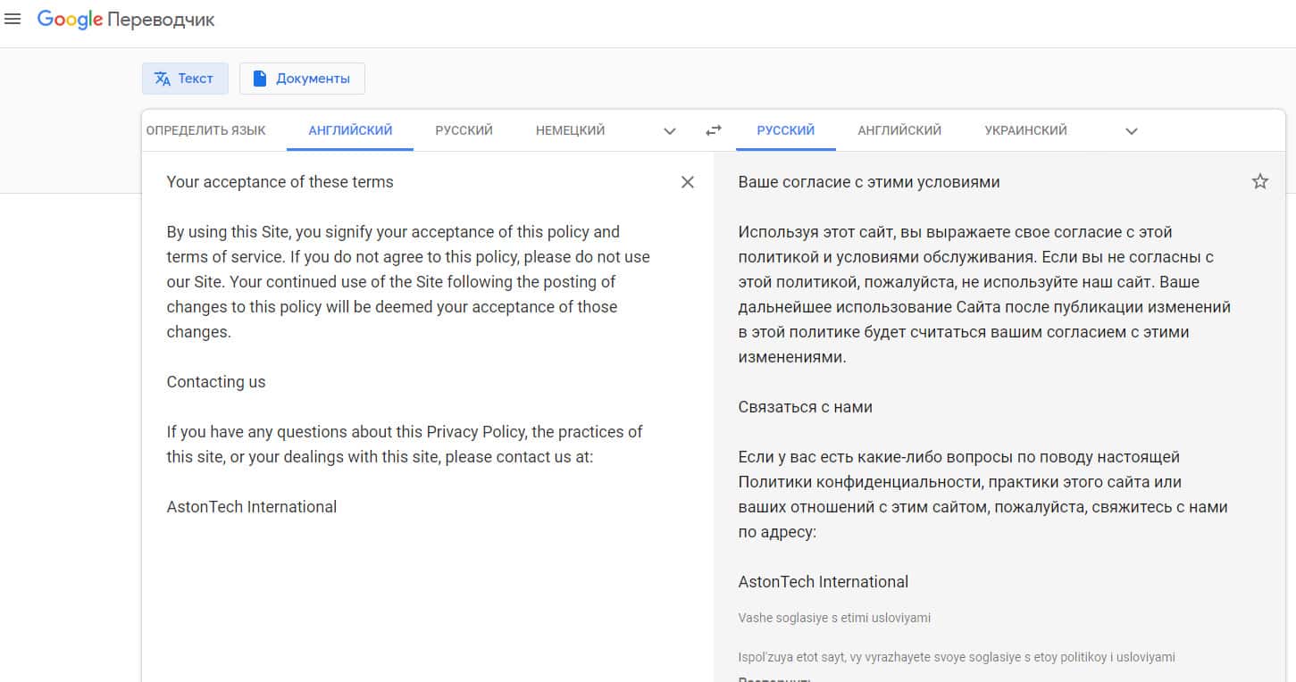 - Условия политики конфиденциальности лохотрона Astontech-International