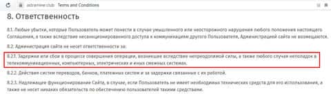 Договор у шарашки AstraMine, ожидаемо, скопирован в Сети и они все анонимы и его придерживаться, понятное дело, не будут. Но для дополнительных лазеек жулики АстраМайн всё же снимают с себя ответственность через форс-мажоры, который могут сами же себе на словах и организовать.