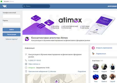 Жулики Атимекс занимаются завлекухой также в социальных сетях, так как это является основным источником новых лохов к себе в лохотрон. Вот ниже представлен скриншот страницы в социальных сетях Вконтакте, где мы можем заметить, что группа насчитывает не более 1000 подписчиков, а посчитав цифры, которые они ставили у себя, то нужно только обворовать всех этих людей, чтобы хоть что-то заработать.