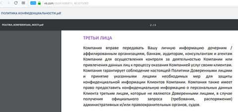 Помимо того, что контора Атимекс не предоставляет никаких данных о договоре и условий взаимоотношений между клиентом и конторой, так еще и в Политике конфиденциальности имеются дыры. Стоит отметить, что ссылка перехода с официального сайта конторы перекидывает нас на файл, который размещен в социальной сети Вконтакте. Ну а вкратце о безопасности данных клиента - мошенники имеют право передавать их третьим лицам.