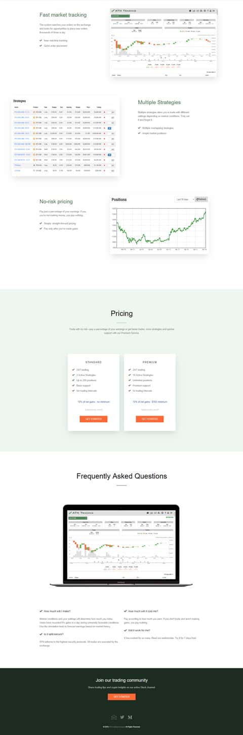 Вот второй части интернет-ресурса конторы ATN Trading нас продолжают уговаривать приобрести робота, который якобы никогда не ошибается. Жулики чертят графики, предлагают 2 вида пакета для покупки робота, а также показывают типа его историю сделок. Адекватный человек понимает, что прибыльного робота никто продавать не будет, а это просто фейк.