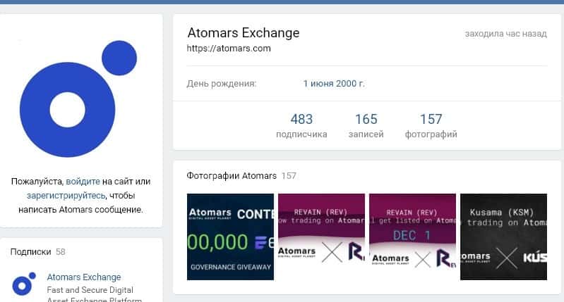 А аккаунт криптообменника Атомарс в социальной сети Instagram вообще заброшен, или не существовал вовсе.