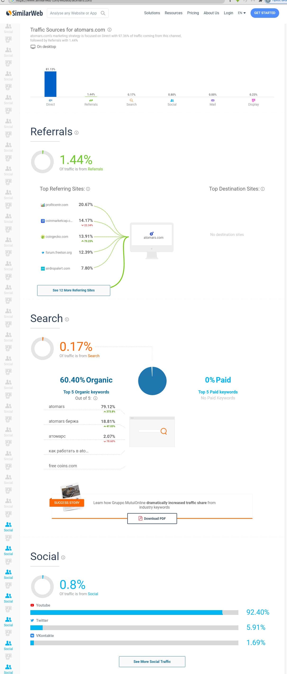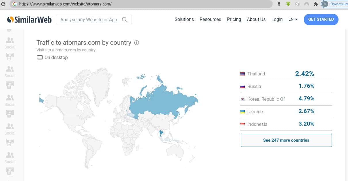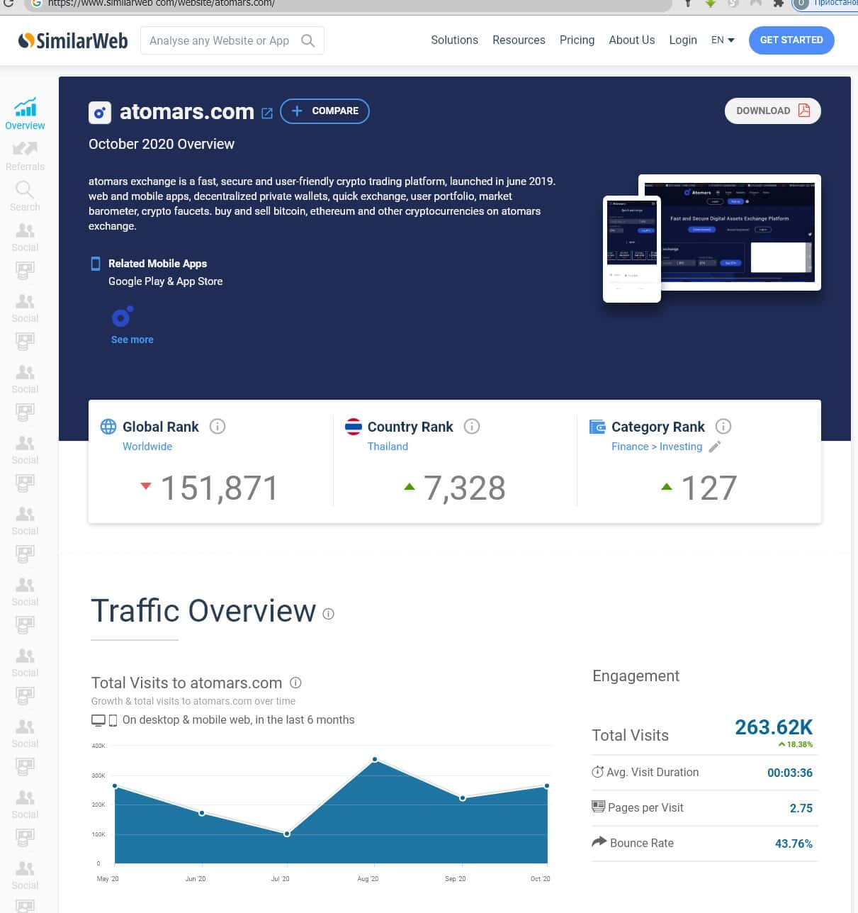 - Анализ работы портала криптообменника Атомарс средствами портала similarweb