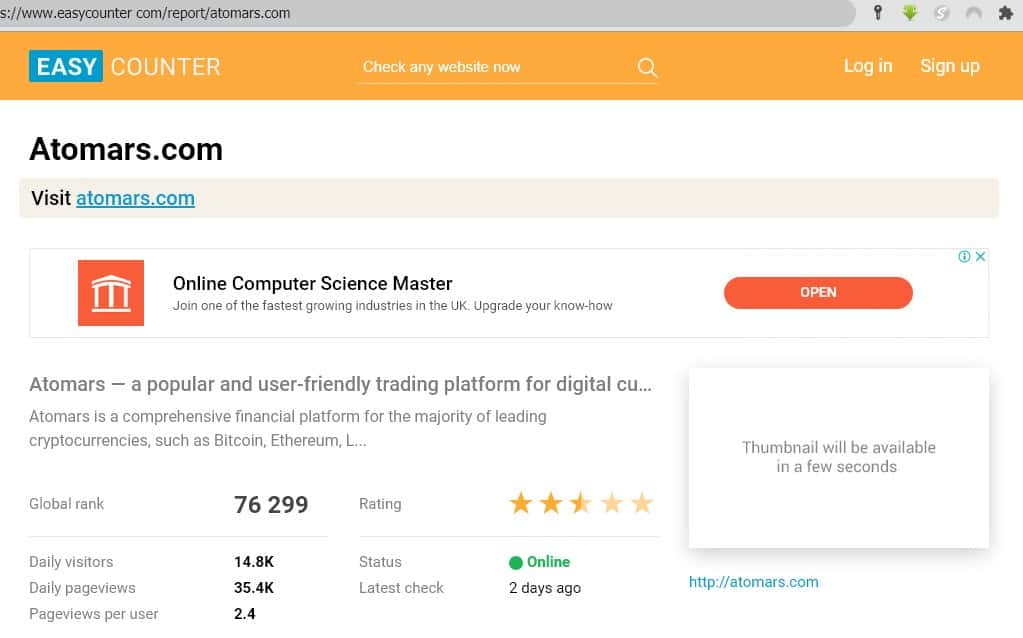 - Обзор трафика криптобиржи Атомарс и её портала на сайте easycounter