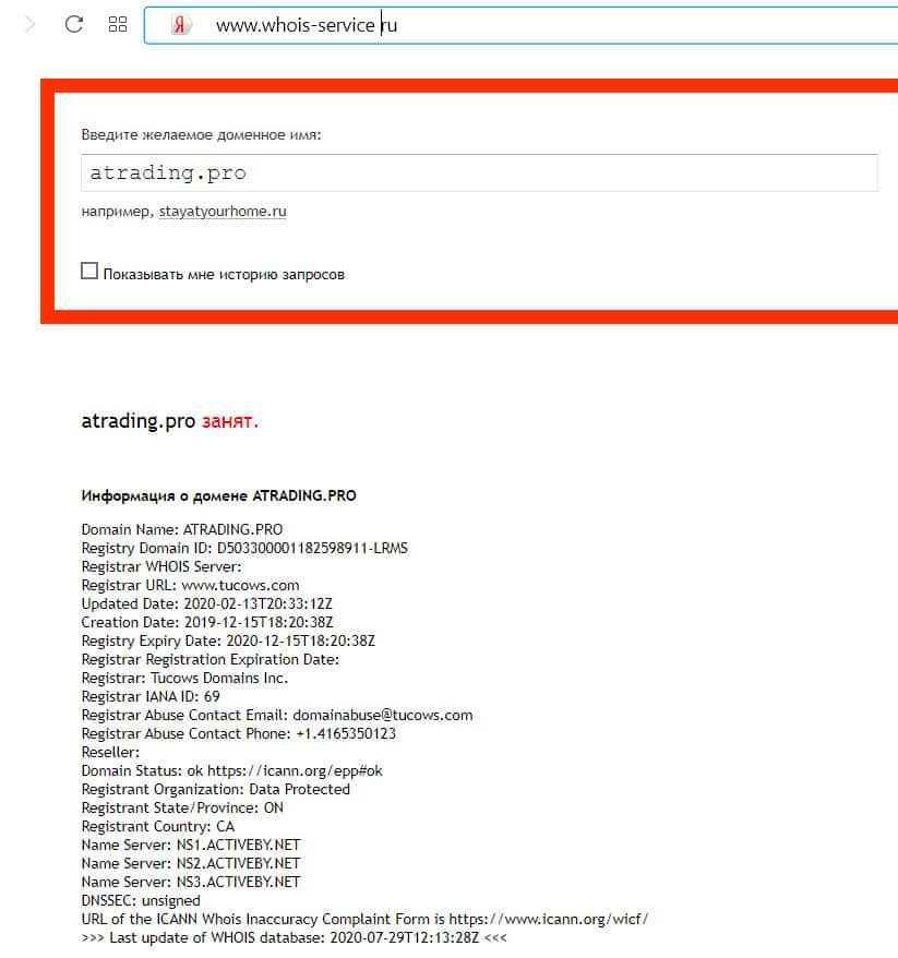 Кому принадлежит доменное имя шулерской компании atrading pro?