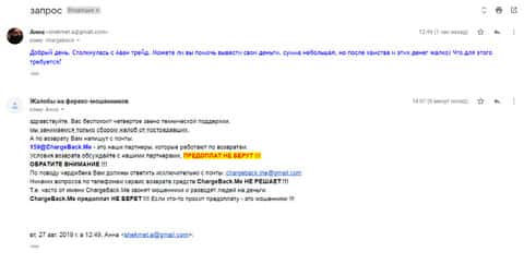 В данном письме человек подробно ответил на все вопросы, по поводу кидалова со стороны Avan-Trade. Жулики выманили у него сумму в размере 160 долларов и только после этого он стал читать отзывы об этой кухне. Сделав выводы, потерпевший направил письмо в организацию ChargeBack.Me с просьбой о помощи.