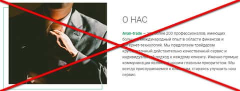 Информации о руководстве, основателях и прочих сотрудниках нигде нет, так как жулье Avan-Trade шифруется от своих клиентов, которых в будущем они сделают своими жертвами и дойными коровами. Единственное что указано на сайте, так это то, что якобы контору организовало 200 профессионалов. Но это обычное голословное заявление.