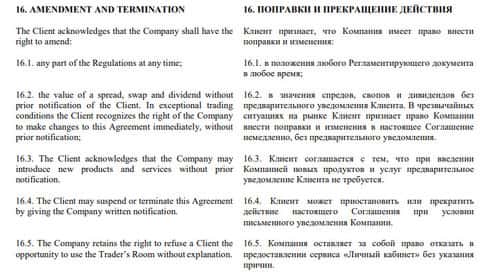 В клиентском соглашении Avan-Trade выглядит все намного хуже, так как тут они создали целое поле для подводных камней. Хватает только одного раздела о поправках и прекращения действия договора. Там сказано, что контора имеет право заблокировать доступ к личному кабинету, где лежат деньги клиента без указания причин.