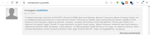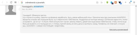 Пользователь Геннадий сильно обозлился на работу хулиганов-воров с АвантФХКупленные отзывы про AvanteFX на onlinebrands