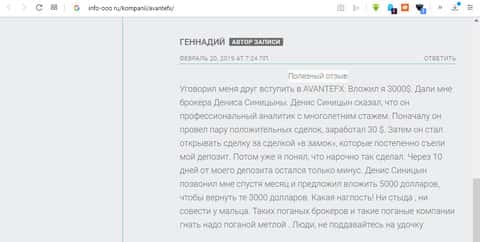 Геннадий прокомментировала работу иностранного брокера AvanteFXГлупость пользователя Геннадия или почему не стоило послушать друзей об АвантФХ