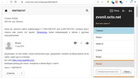 В сети можно найти интересную информацию о нашем горое-брокере АвантФХ. Одной женщине звонили с какого-то телефона и пытались впарить какую-то дичь, рассказывая о сверхвысоких прибылях и многоуровневом развитии конторы. Она решила написать в интернете, что это за люди. И получила ответ, в котором говорится, что звонили ей с АвафнтФХ, который является просто потомком нашумевшей мошеннической кухни МММ, а данные взяли с Авито.