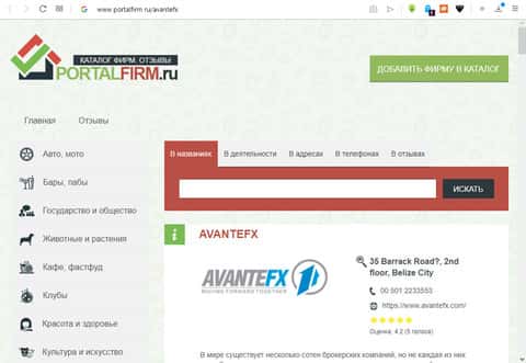 Portalfirm о преимуществах работы с AvanteFX в сравнении с другими брокерамиКупленная статья о АвантФХ с сервиса yelp ru