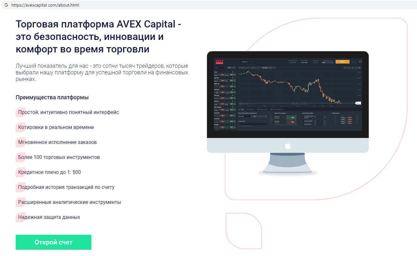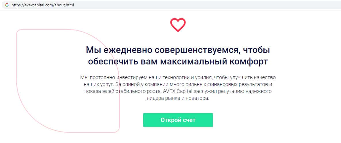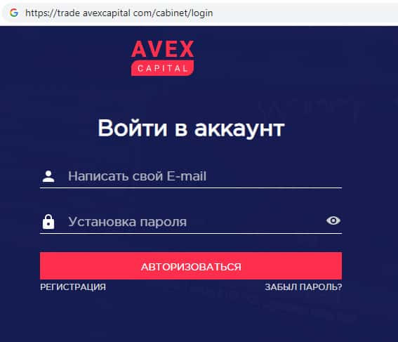 - Обзор официального интернет-портала мошеннической организации AvexCapital