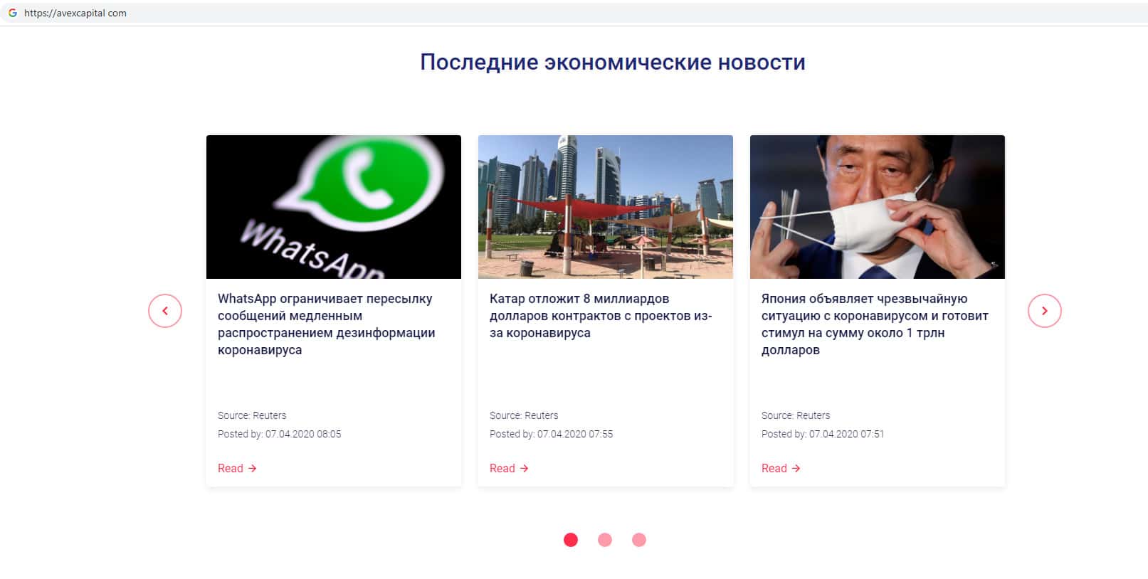 - Лента новостей мировой экономики на сайте мошеннической организации AvexCapital