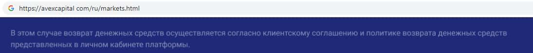 - Возможность вывода денежных средств со счета на сайте компании Авекс Капитал не подтверждена