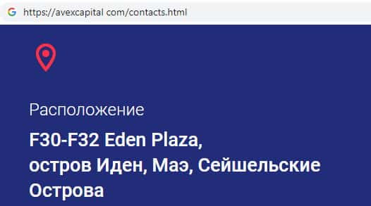 Жульническая организация AvexCapital имеет оффшорное место регистрации а именно зарегистрирована на Сейшельских Островах, что является показателем того, что компания не подходит для граждан РФ. В случае утраты Вами денежных средств Вы ничего не докажете и не сможете вернуть деньги.
