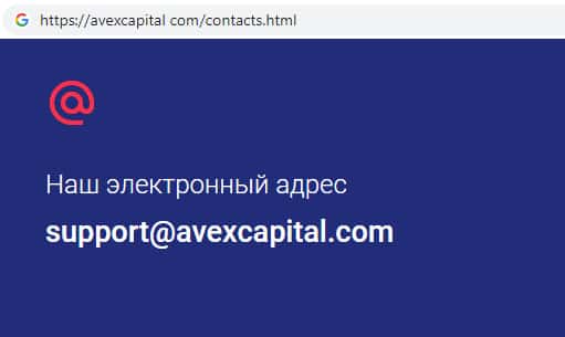 - адрес электронной почты брокерской конторы AvexCapital: support@avexcapital com