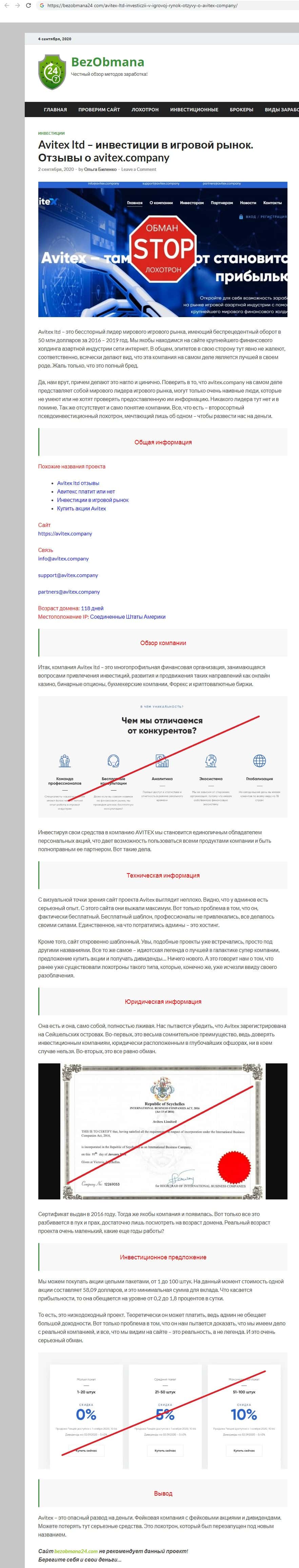 - Мнение интернет ресурсов о компании мошенников Avitex Company