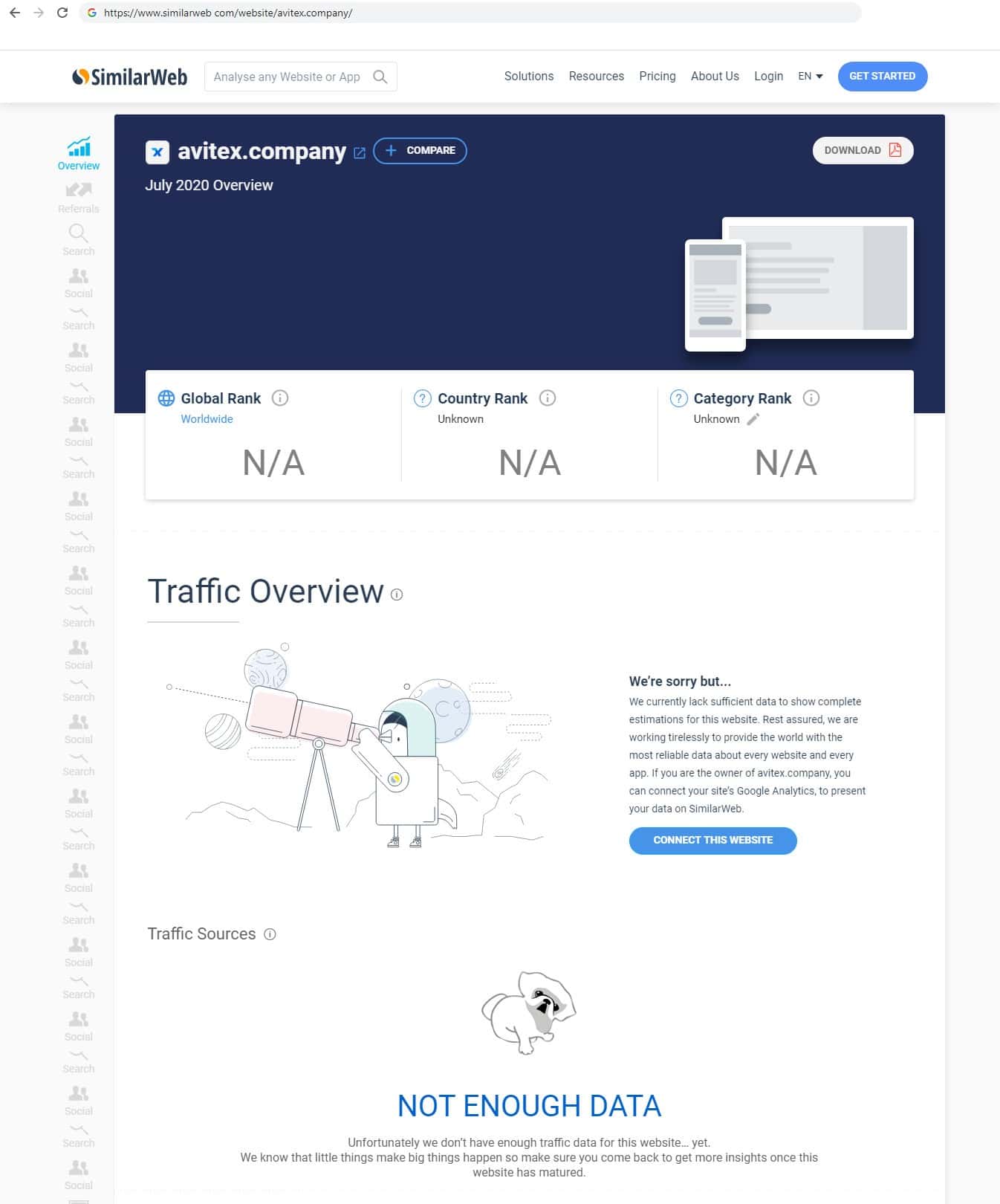 Мы хотели узнать информацию о трафике сайта кидал Авитекс Компани через интернет ресурс similarweb com, но оказалось, что международный сервис не знает о существовании такой конторы.