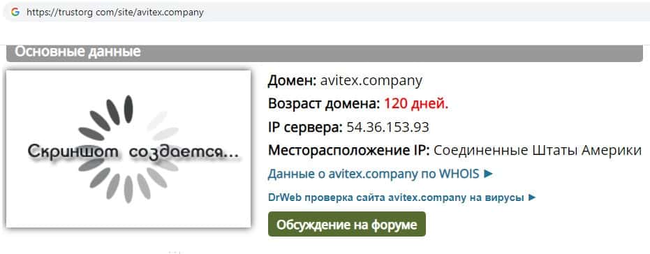 Через интернет ресурс "Доверие в Сети" мы проверили возраст компании мошенников Avitex Company. Оказалось, что жуликам всего 4 месяца, и вся информация о их опыте - полная ложь!