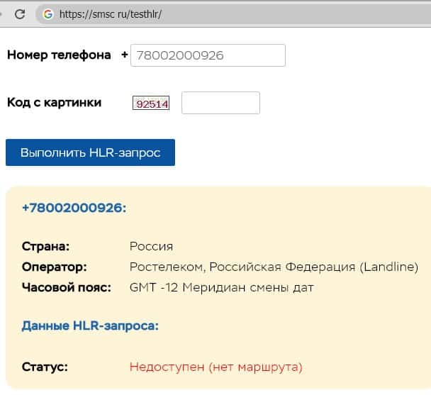 smsc ru testhlr - сервис проверки телефонных номеров посредством HLR-запроса