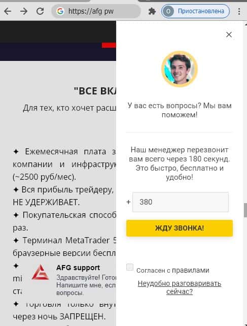 afg pw - непосредственно сайт мошеннического проекта Аврора Финанс Групп
