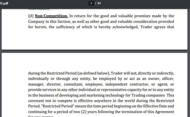 В п.9 пп.d трейдер обязуется при сотрудничестве с компанией не сотрудничать больше ни с кем в брокерском бизнесе и не участвовать в разработке трейдерских стратегий.