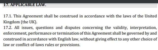 В любых спорных ситуациях между трейдером и компанией Борса Трейд стороны обязаны руководствоваться исключительно юридическим правом Великобритании.