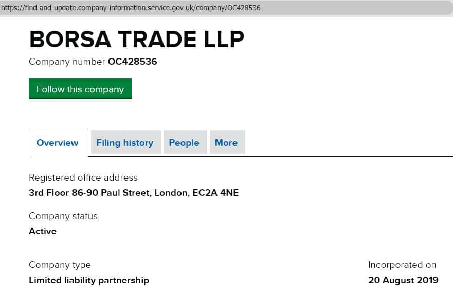 В юридических документах мошенники из Аврора Финанс Групп ссылаются на компанию BORSA TRADE LLP (№ OC428536)., зарегистрированную в Соединенном Королевстве.