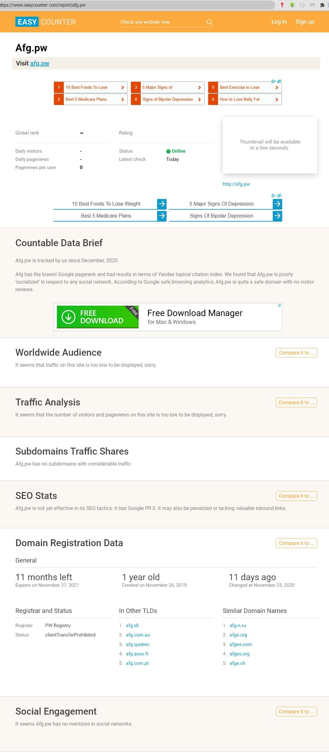 Неудачный анализ продуктивности портала AFG Pw средствами сайта similarweb
