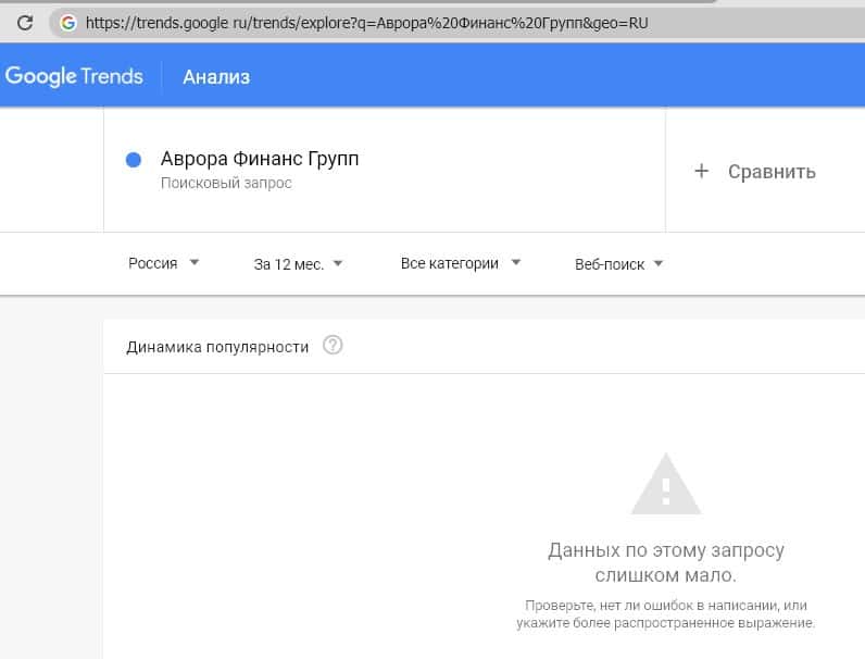 - Анализ брендовых запросов Аврора Финанс Групп в системе Google Trends